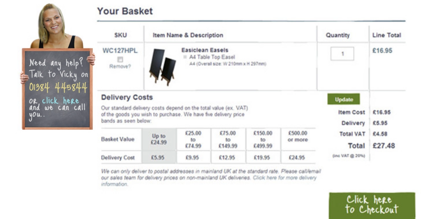 The initial idea came from a strategy we implemented with Chalkboards UK way back in 2010, where we included a photo of one of the team members, Vicky, throughout the customer's journey: